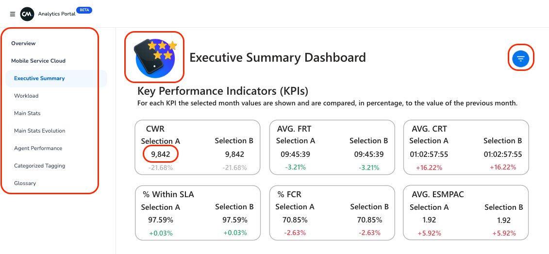 Filter buttons have been added on all dashboards to facilitate a uniform navigation experience across the platform.