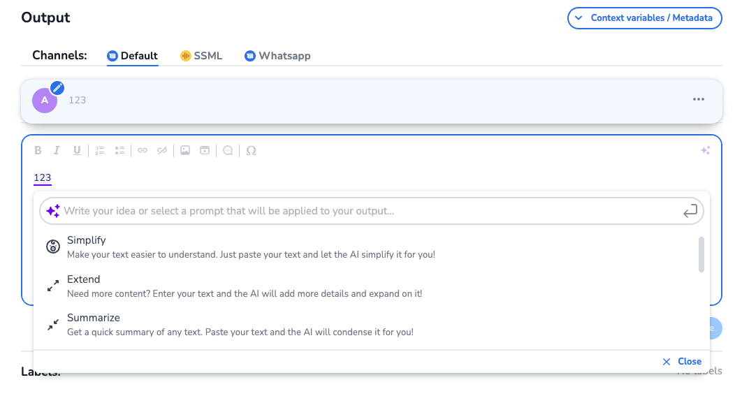 With this release we migrated the CMS of Conversational AI Cloud to Vue.js framework. This release enhances the platform's performance, particularly evident in faster tab switching within the CMS interface.
