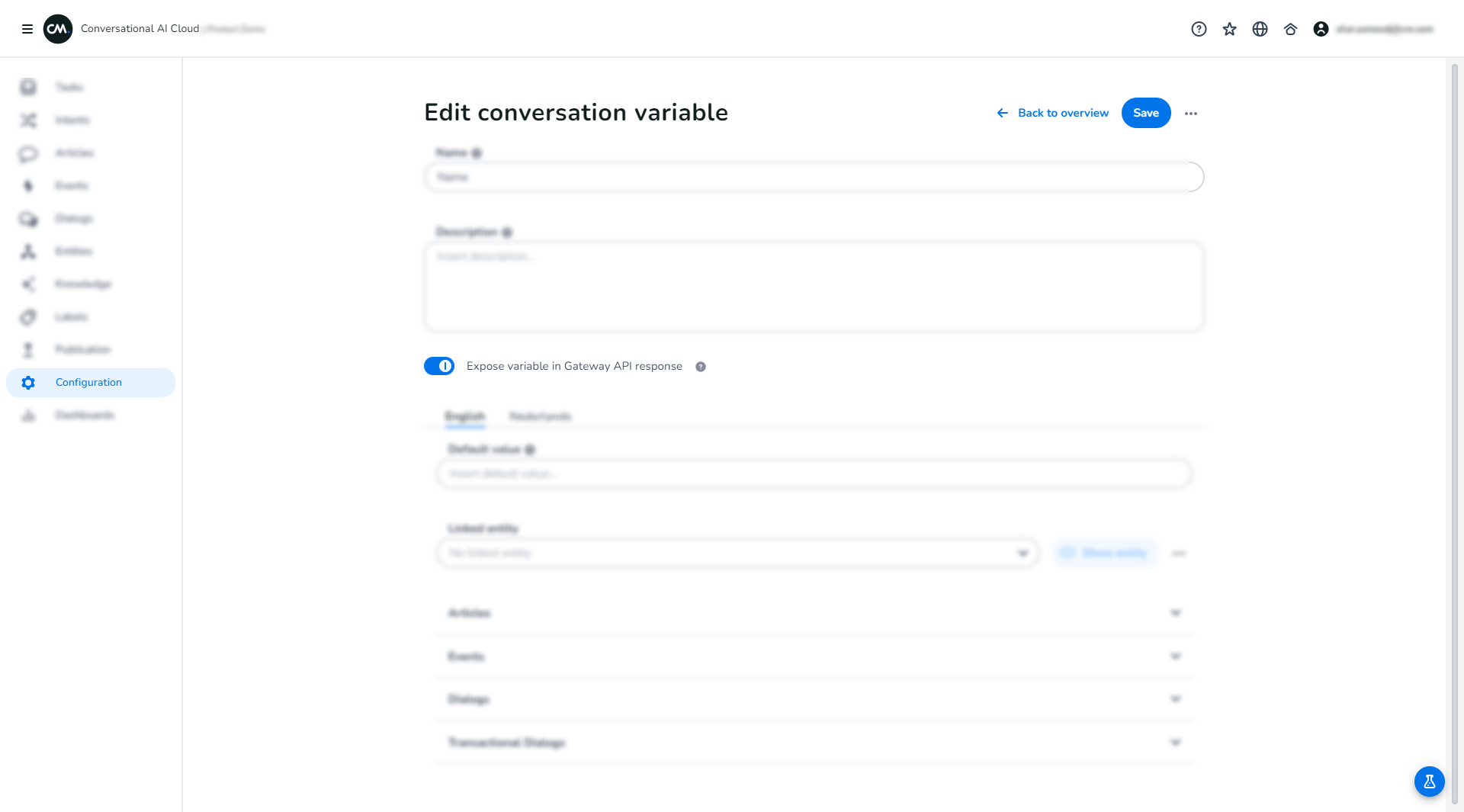With this update, you now have the capability to make your conversation variables accessible through the gateway API. This enables integration partners to integrate their internal sessions with the values extracted by our system through dialogs.