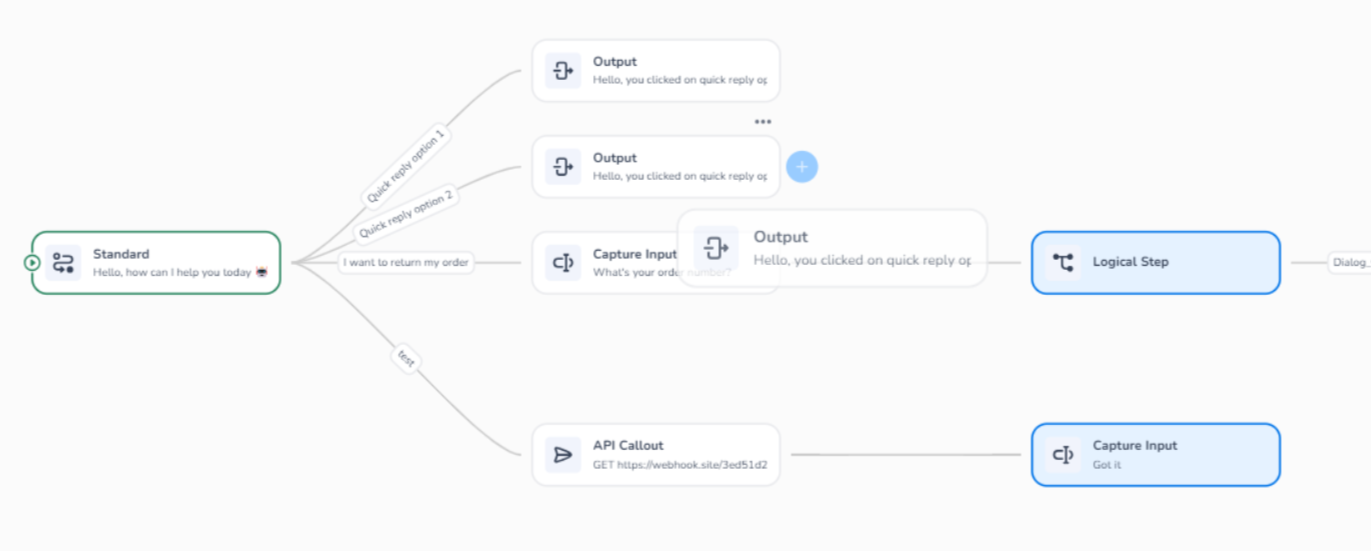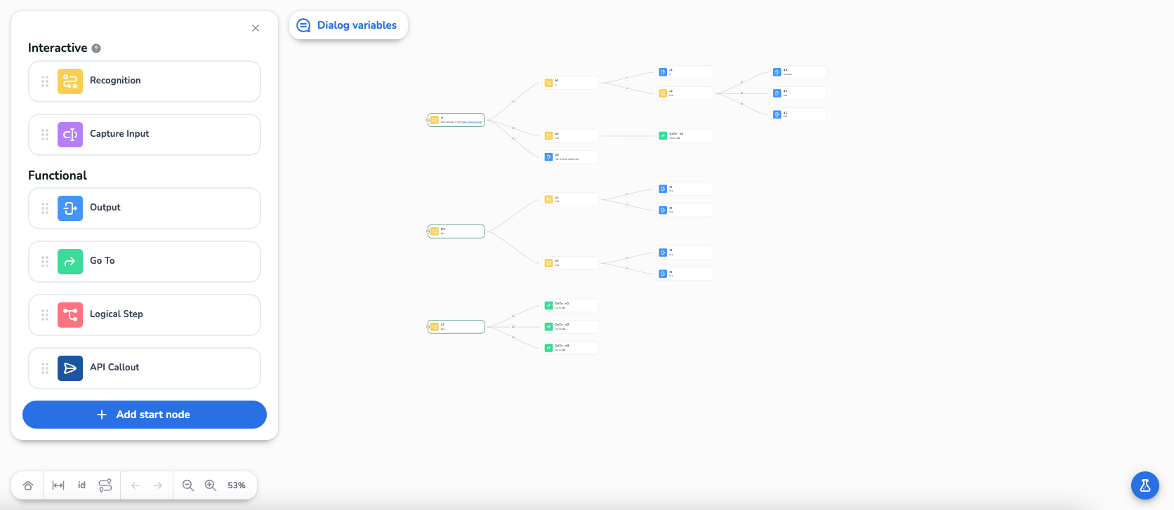 In this latest update, we've completely rethought the dialogs feature to become a full no-code Conversational AI Platform. We combined the features of regular dialogs and transactional dialogs, and extended it with all the feedback we've received throughout the years from you, our customers. Now you can build the entire conversational flow end-to-end without having to write a single line of code or deploy anything, anywhere. This allows you to easily connect to external systems like CRM's, OMS', ERP's, or any other API.