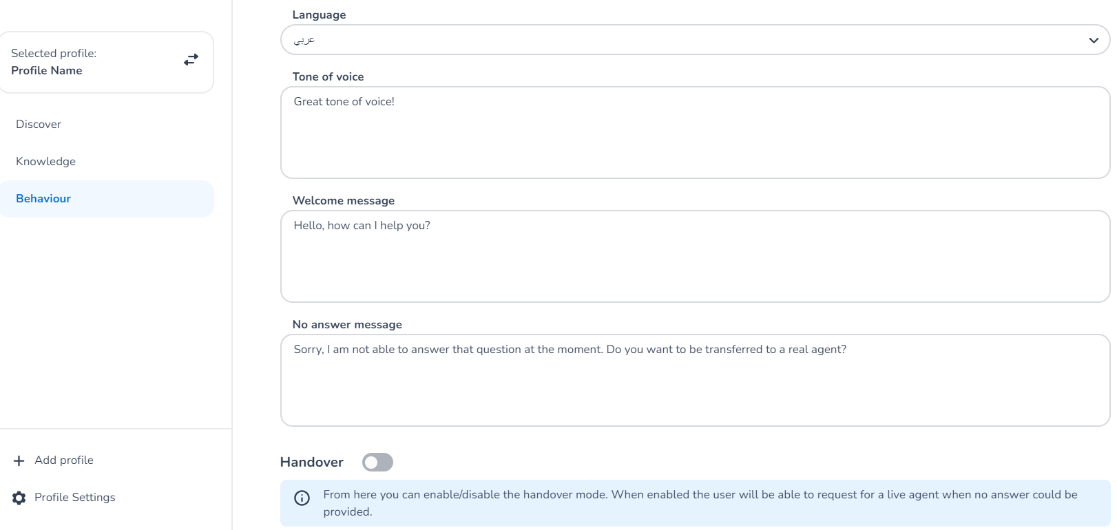 They say a picture is worth a thousand words, but what about an interactive guided tour? We are introducing the first interactive guided tour, which will allow you to get started faster with HALO (Basic). In less than five minutes, the tour walks you through the most important features: Profile selection, Knowledge base, Behaviour settings, and finally, the Chatbot Test Centre. You can start the tour at any moment in time using the 'Take the tour' button in the left corner of the screen.