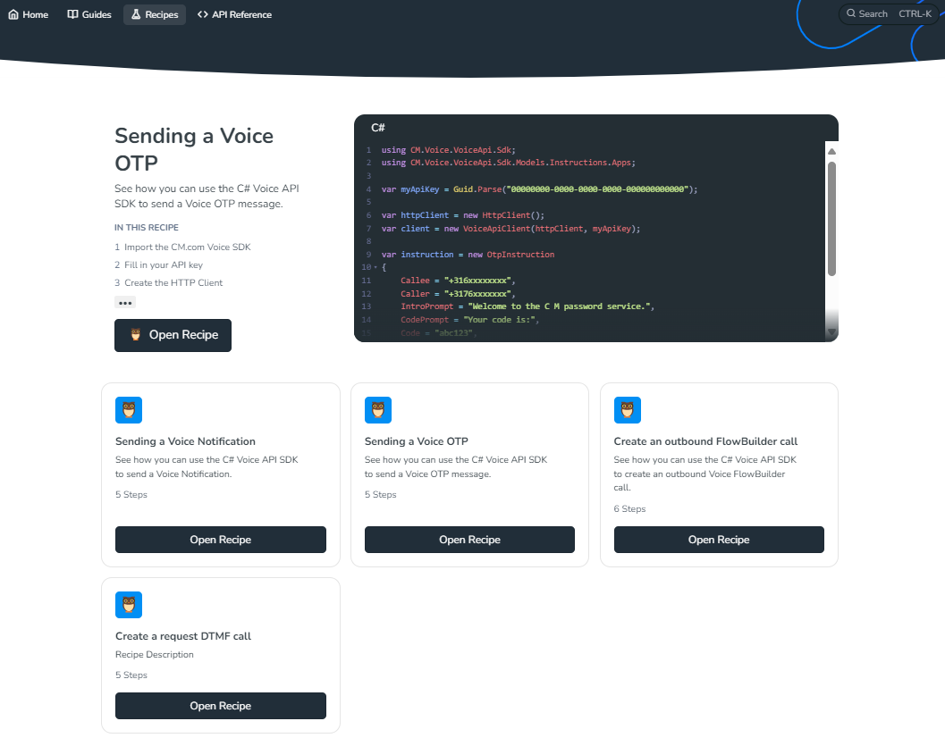 With the new recipes you can now quickly see how to use the C# SDK to send a Voice Message. You can check it out on Overview and Recipes.